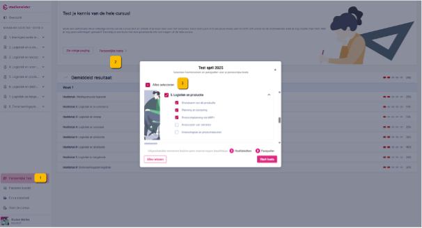 Bij het starten van de toets kunnen zij zelf de hoofdstukken en paragrafen kiezen.